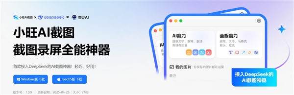 例如,首款接入DeepSeek的AI截图神器小旺AI截图更新至1.0.9版本,近日,