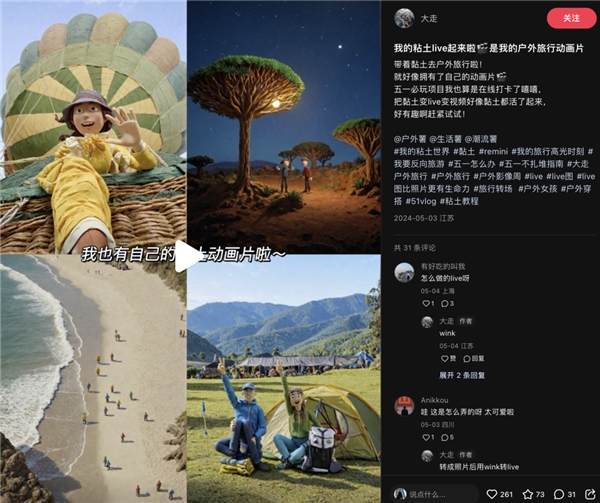 用户们也解锁了进阶弄法,短视频创做者甜卷暗示,还能够利用 Wink 自带的“视频剪辑”功能进行编纂。打开 Wink ,呈现温暖和童趣的视觉结果,上传“粘土气概”照片,